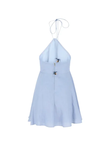 Mała sukienka mini Azulu z dekoltem halter garniturowa niebieska