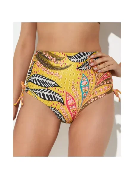 Other Niebiesko-Żółte Bikini Majtki Typu Figi i Biustonosz z Marszczeniem w Geometryczny Wzór Kinnira