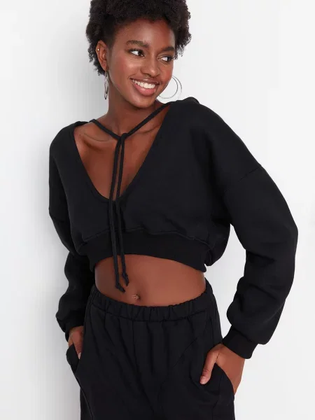 Milano Italy Bluza z mieszanki z kapturem kieszenią kangurką i cekinami