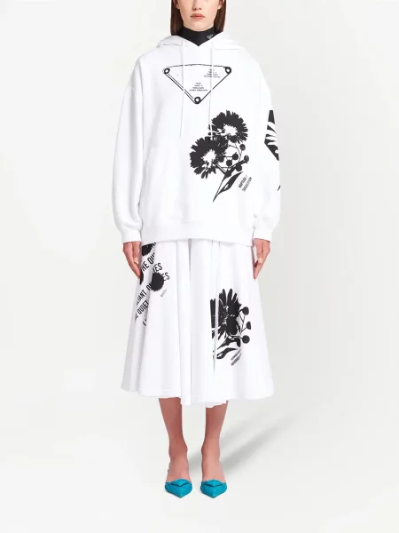 Dolce And Gabbana Bluza z kapturem w kwiatki o krotszym kroju z autografem
