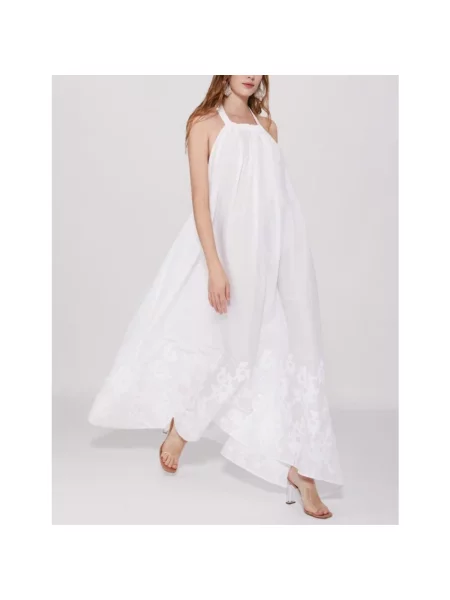 Maksi sukienka maxi Brand Unique z dekoltem halter biała