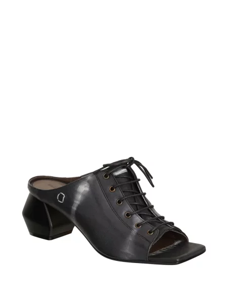 Klapki mules Collection Privée? sznurowane skórzane czarne