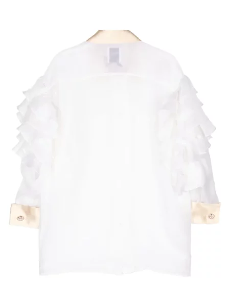 Jedwabna koszula Edward Achour Paris z falbankami biała