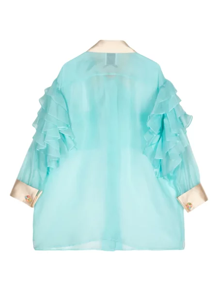 Jedwabna koszula Edward Achour Paris z falbankami niebieska