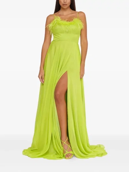 Sukienka maxi w piórka z rozcieciem garniturowa