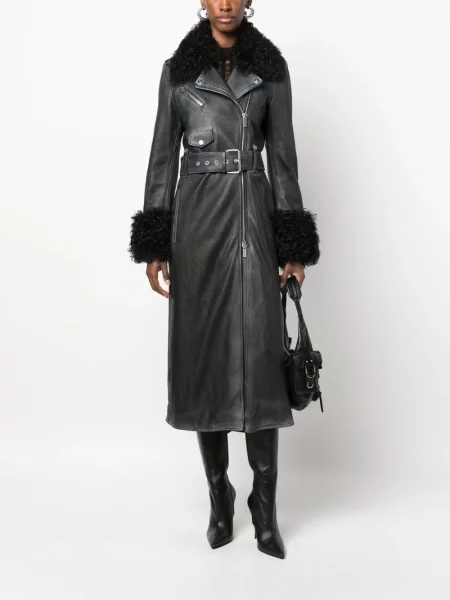 Pakowny płaszcz skórzany dwurzędowy
