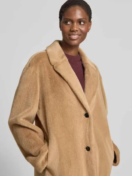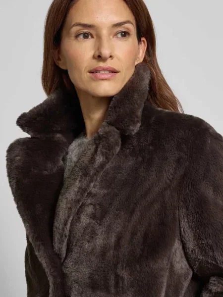 Płaszcz o kroju relaxed fit ze sztucznego futra z kołnierzem z połami