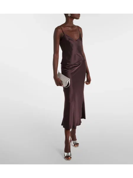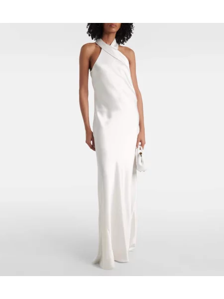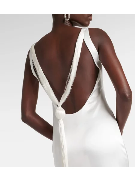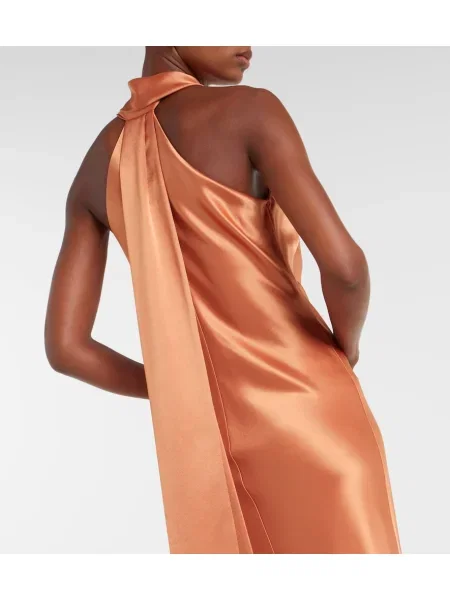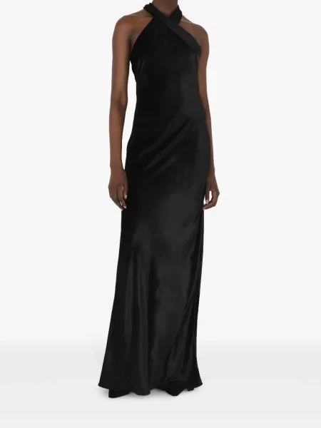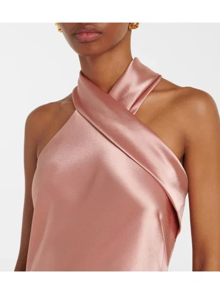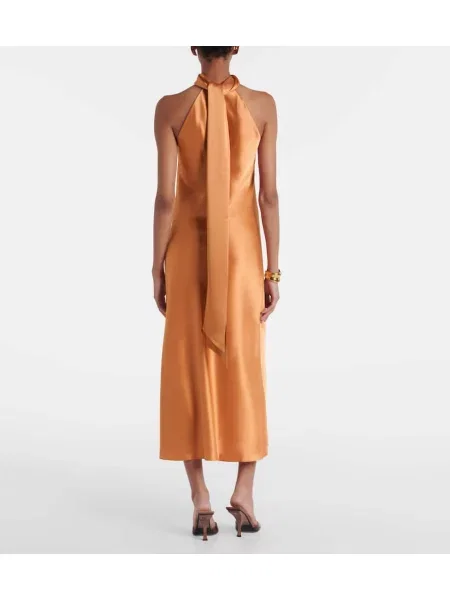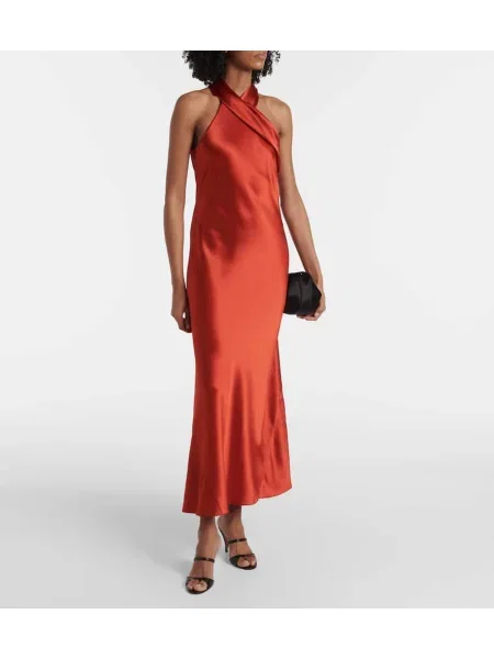 Galvan Satynowa sukienka midi do kolan z dekoltem halter
