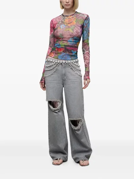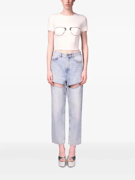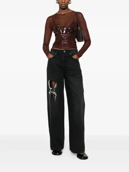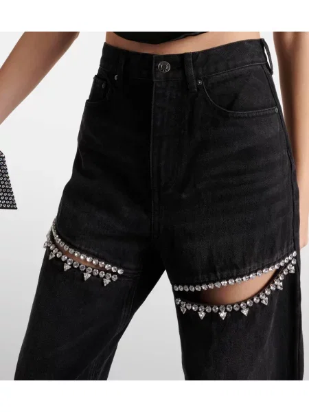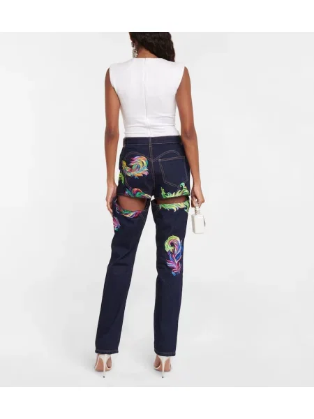 Area Haftowane proste jeansy z wysoką talią