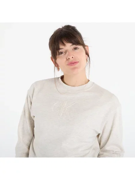 Calvin Klein Bluza Jeans Ls Embossed Monologo Terry Crewneck Vanilla Heather S