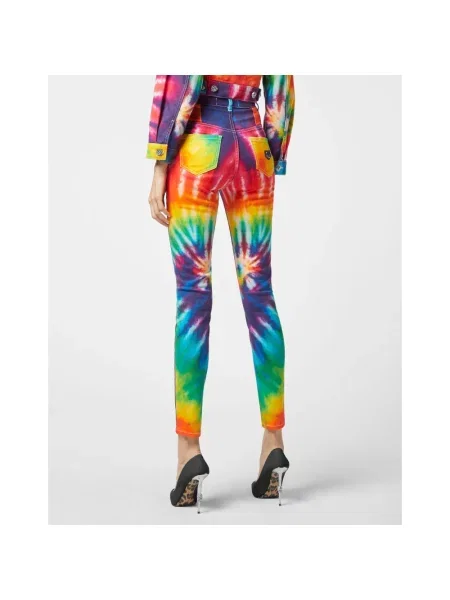 Tie dye wielobarwność jeansy z wysoką talią