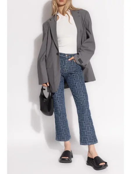 Ganni Jeansy do kostek z wysoką talią z nadrukiem w panterkę