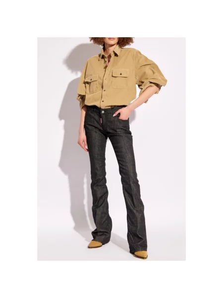 Jeansy dzwony z niską talią damskie