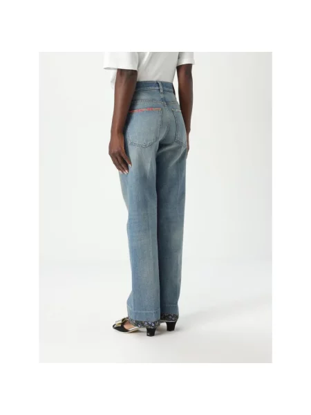 Jeansy Straight Leg w kwiatki damskie