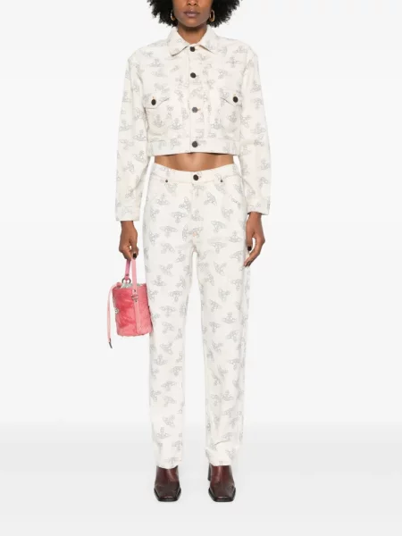 Jeansy Straight Leg żakardowe damskie