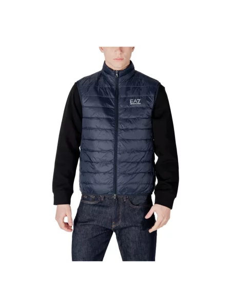 Emporio Armani Ea7 Lniana kamizelka puchowa ze stójką bez rękawów