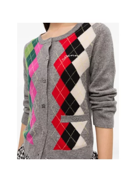 Ganni Kardigan wełniany z wzorem argyle