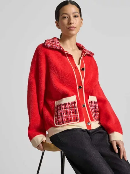 Essentiel Antwerp Kardigan rozpinany o kroju regular fit z kołnierzem z dzianinowych falban Model JARDENER'