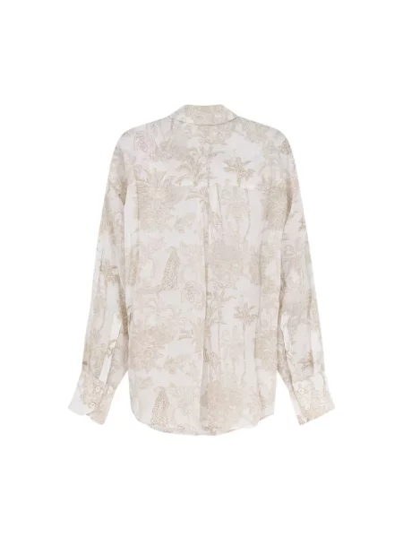 Brunello Cucinelli Haftowana lniana kołnierzykowy koszula