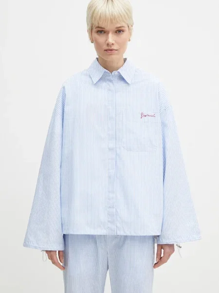 Fiorucci Koszula Striped Embroidered Drawstring Shirt relaxed z kołnierzykiem klasycznym