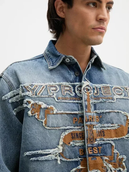 Y/project Koszula jeansowa EVERGREEN PARIS BEST PATCH DENIM SHIRT relaxed z kołnierzykiem klasycznym