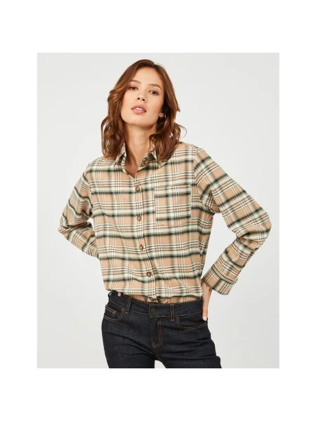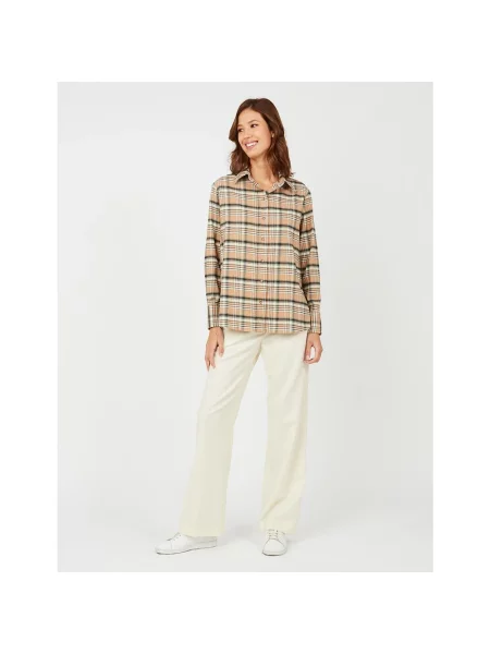 Beżowe koszule w kratkę damskie