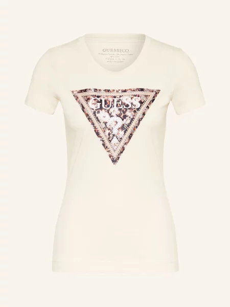 Guess T-shirt o kroju slim fit z obszyciem ozdobnymi kamieniami