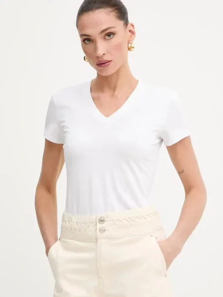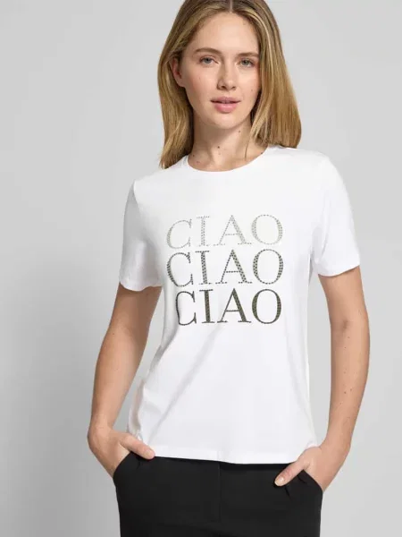 Christian Berg Woman T-shirt z obszyciem ozdobnymi kamieniami i okrągłym dekoltem