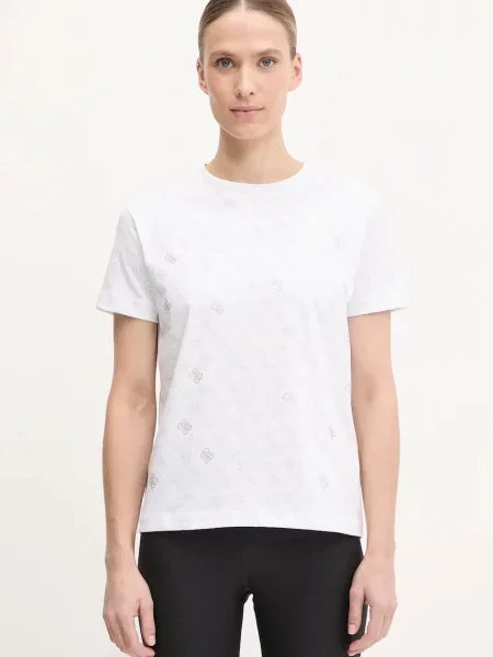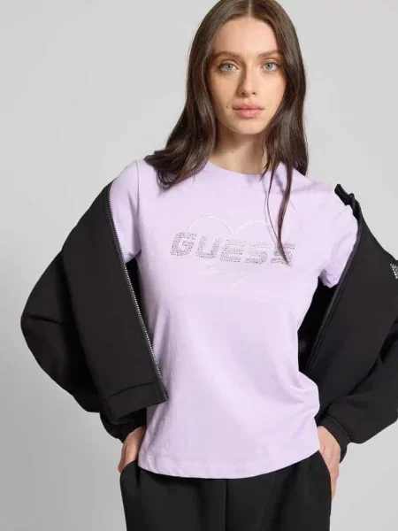 Guess T-shirt o kroju slim fit z obszyciem kamieniami stras na całej powierzchni