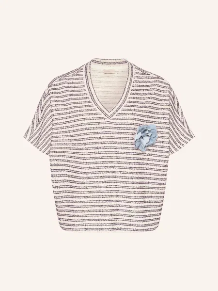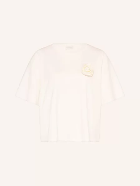 Christian Berg Woman T-shirt o kroju relaxed fit z dekoltem w serek i ozdobnymi plisami