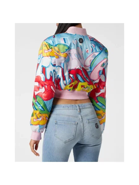 Philipp Plein Satynowy wielobarwność kurtka bomber o krotszym kroju