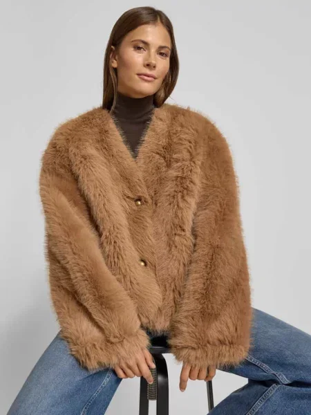 Essentiel Antwerp Pudełkowy krój kurtka ze sztucznego futra z listwą guzikową model "IJACKET"