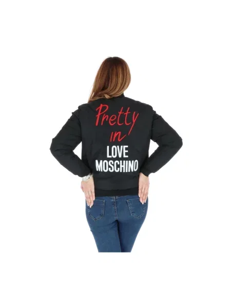 Love Moschino Pikowany kurtka bomber z nadrukiem z długim rękawem