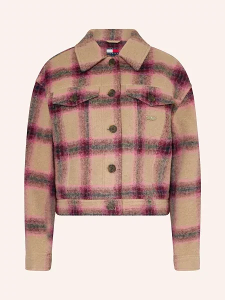 Tommy Jeans Kurtka wełniana Kobiety Wełna lila|beżowy w kratkę S