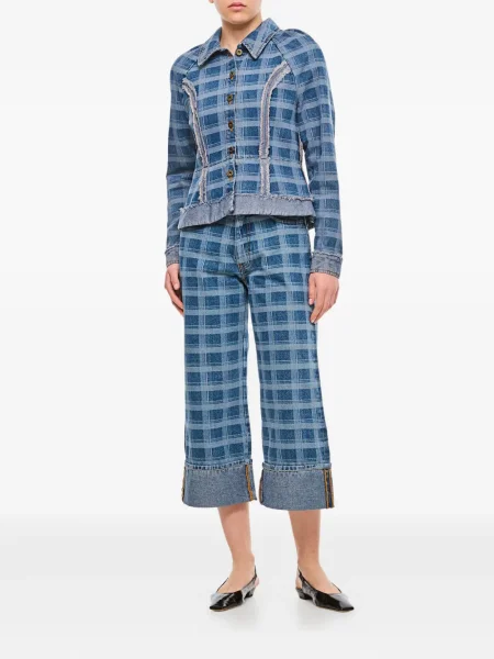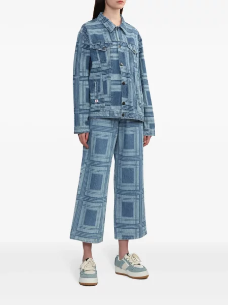 Charles Jeffrey Loverboy Kurtka jeansowa w kratkę z nadrukiem