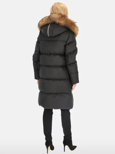 Ann Gissy Puchowa Kurtka Pikowana o Długim Kroju z Kapturem z Futerkiem Bavea
