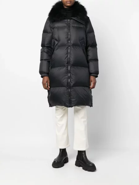 Ann Gissy Puchowa Kurtka Pikowana o Długim Kroju z Kapturem z Futerkiem Bavea