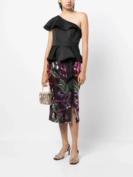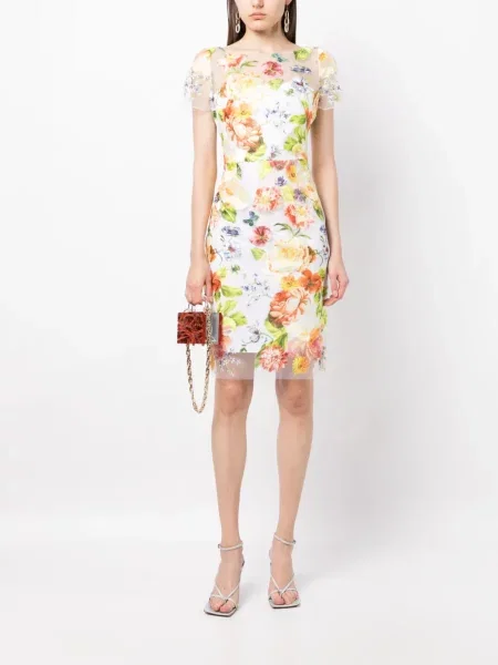 Marchesa Notte Haftowana sukienka wieczorowa w kwiatki