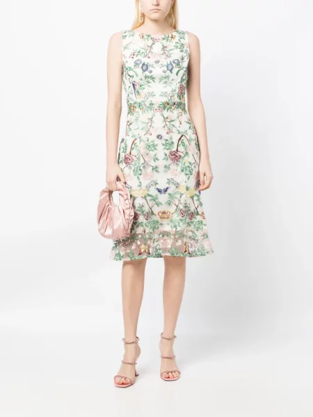 Marchesa Notte Przezroczysta sukienka bez rękawów bez rękawów garniturowa