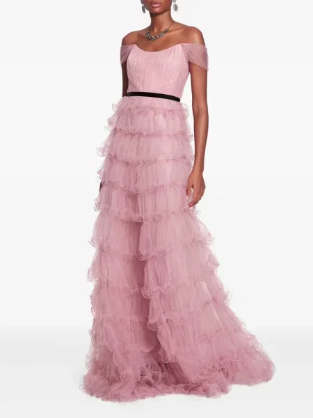 Marchesa Notte Długa sukienka maxi z kryształkami garniturowa