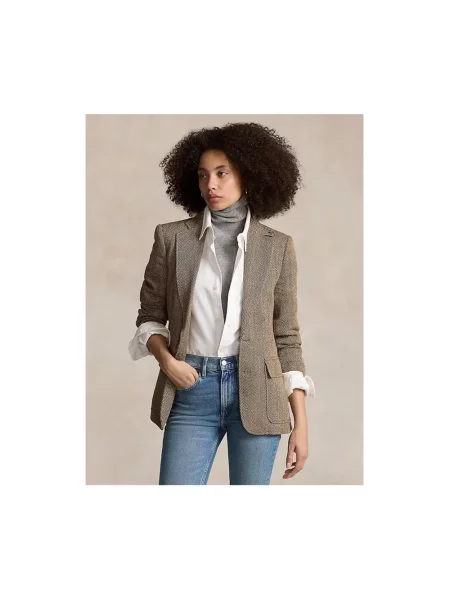 Polo Ralph Lauren Długi żakiet z mieszanki lnu i jedwabiu z dodatkiem wełny model ‘HERTIAGE’