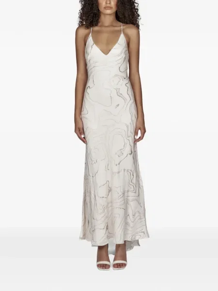 Maksi sukienka maxi Mia Peculiar z dekoltem w serek garniturowa biała