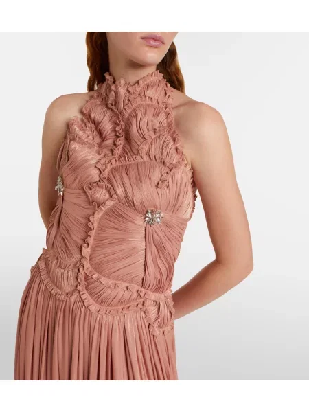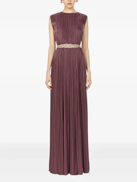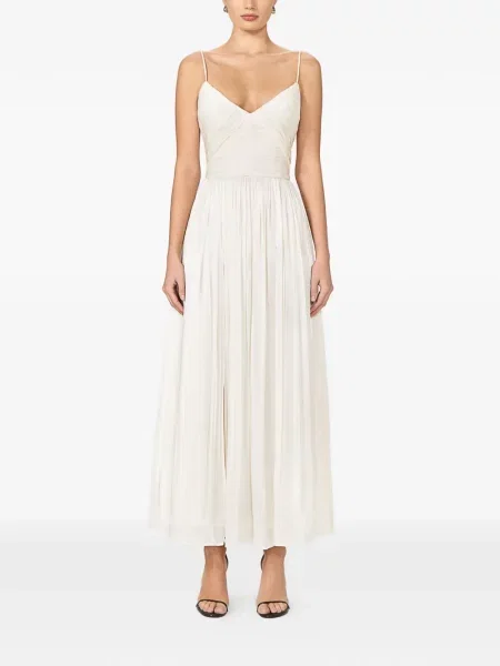 Costarellos Sukienka maxi z dekoltem w serek plisowana garniturowa