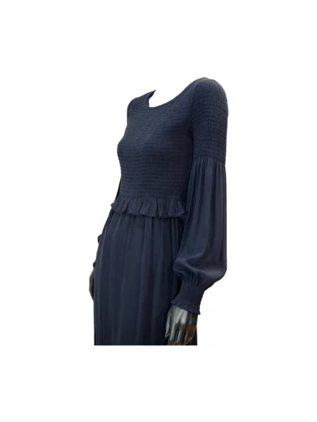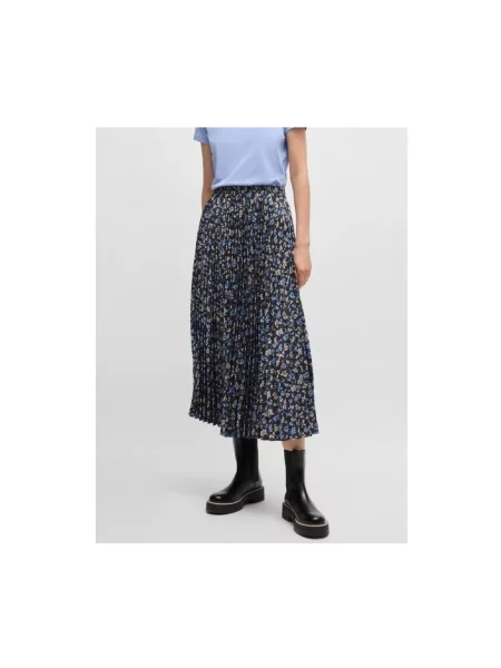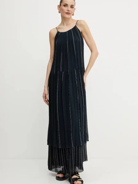 Hugo Boss BOSS sukienka z domieszką jedwabiu granatowy maxi rozkloszowana