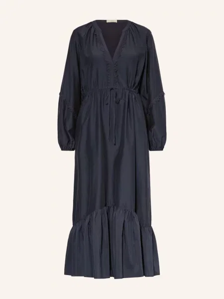 Ivi Collection Sukienka Z Jedwabiu I Koronki Ażurowej blau