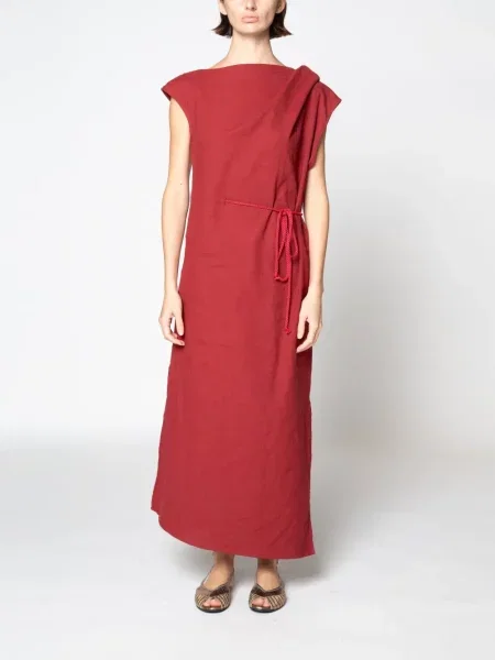 Lniana sukienka midi do kolan garniturowa