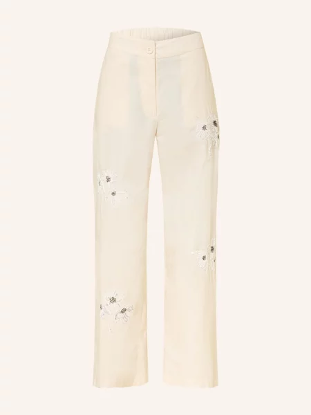 Ottodame Ottod'ame Spodnie Z Marlowej Tkaniny Z Cekinami I Ozdobnymi Perełkami beige
