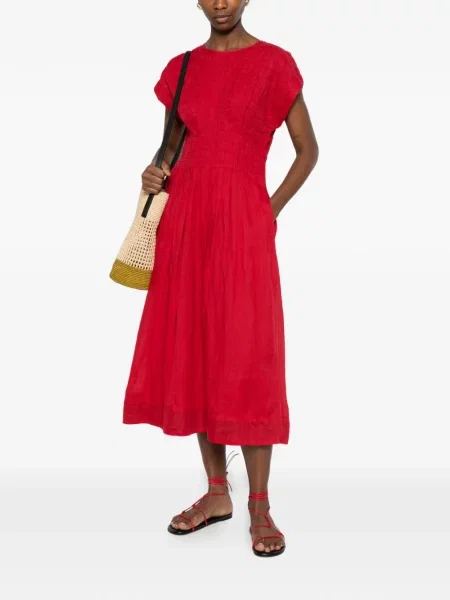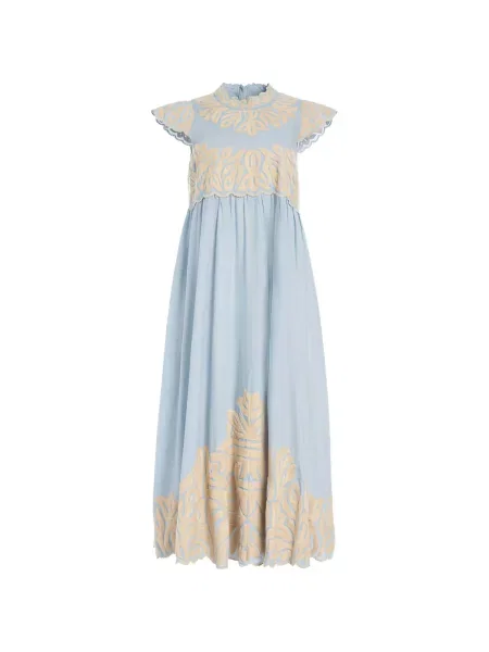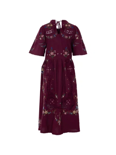 Haftowana sukienka midi z okrągłym dekoltem do kolan