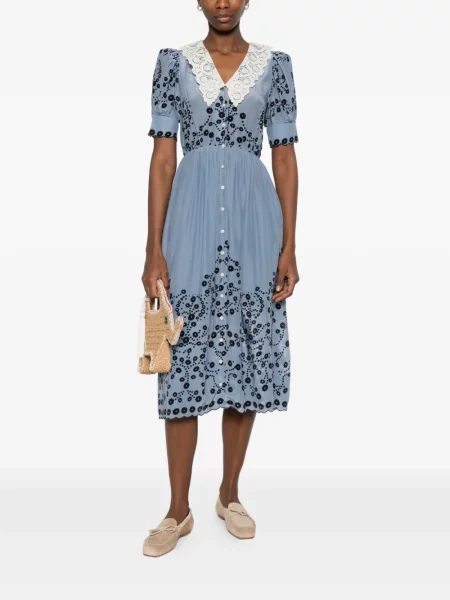 Haftowana sukienka midi do kolan garniturowa