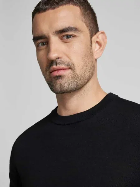 Selected Homme Sweter z dzianiny z wełny merino z prążkowanymi wykończeniami model ‘TRAY’